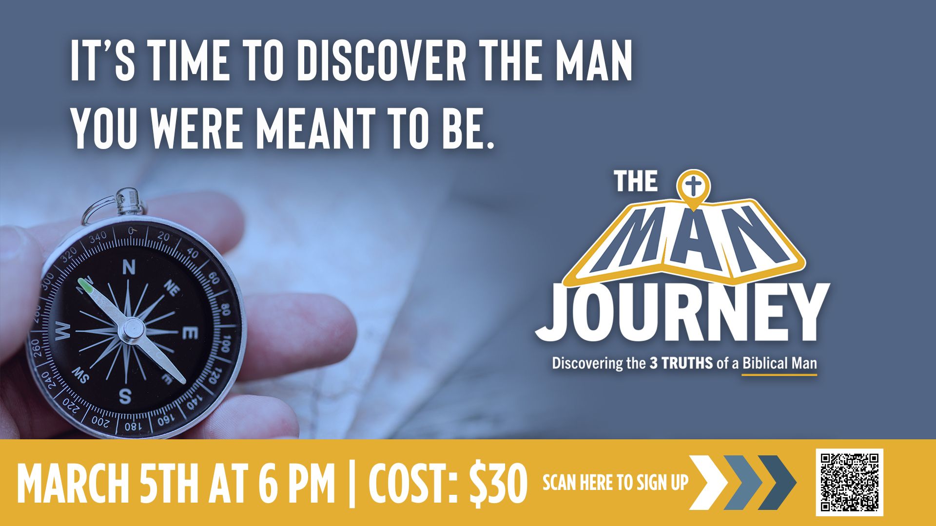 Looking for meaningful friendships, spiritual growth, and a challenge to become the man God created you to be? The Man Journey is our men’s discipleship group that meets weekly to study God’s Word, encourage one another, and pursue Christ-centered manhood together. Whether you're new to church or have been walking with Jesus for years, there's a place for you on the journey. Join us Thursday Evenings at 6 PM in the Fellowship Hall. We will be launching a new session on March 5th