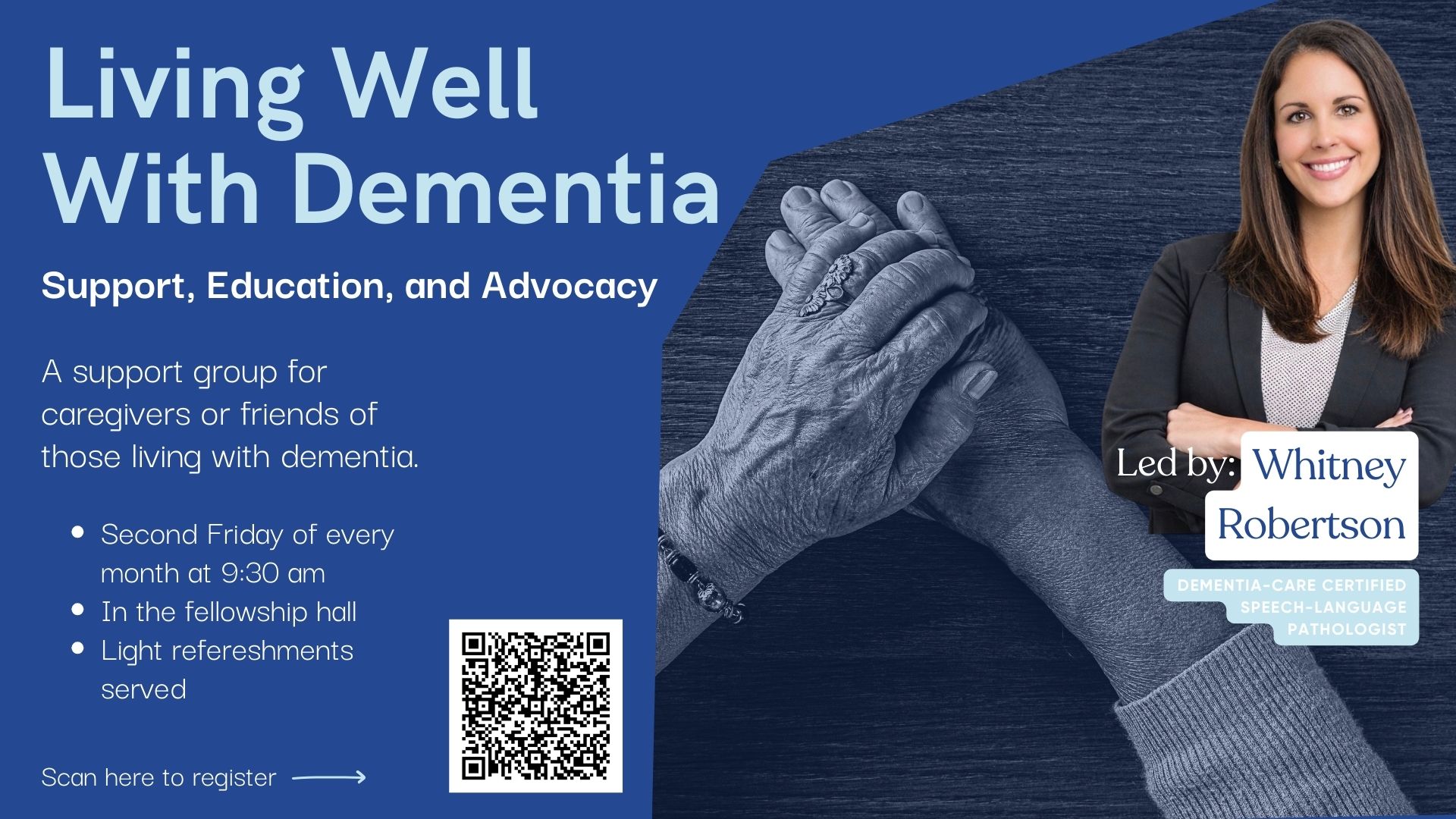 This group will be led by Whitney Robertson, a Dementia-Care certified Speech-Language Pathologist and Senior Care Advisor. The group will meet on Friday, February 13th at 9:30 a.m. in the Fellowship Hall. This will be a safe, faith-centered space for caregivers, family members, friends, and anyone who loves or walks alongside someone living with dementia—or simply wants to learn more. The heart behind this group is encouragement, practical support, and a reminder that no one walks through these seasons alone.