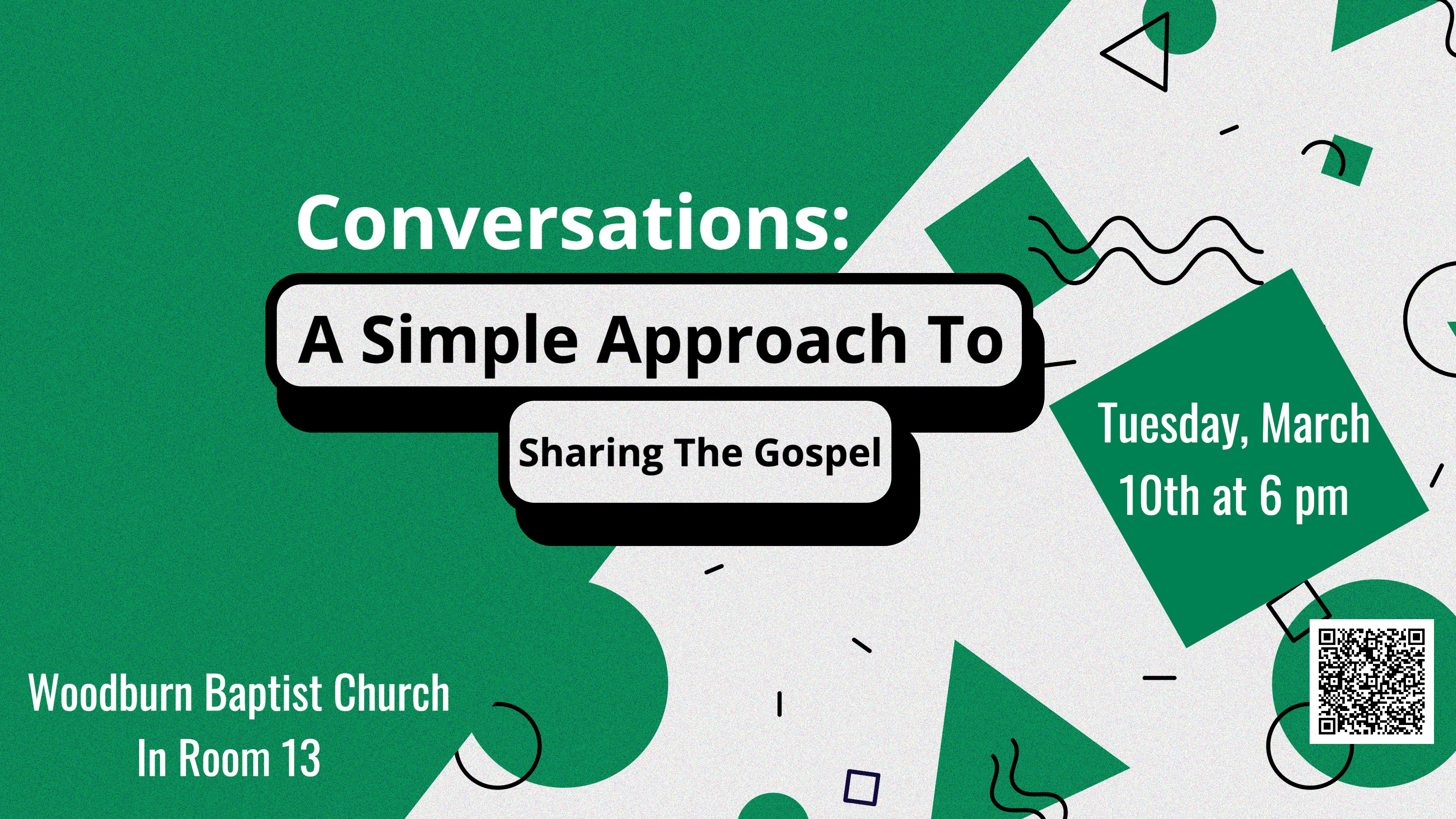Join us Tuesday, March 10th at 6 pm in room 13 for our Conversations class. This is a practical training that will help you learn to share your faith in everyday life in a way that feels natural and is engaging.