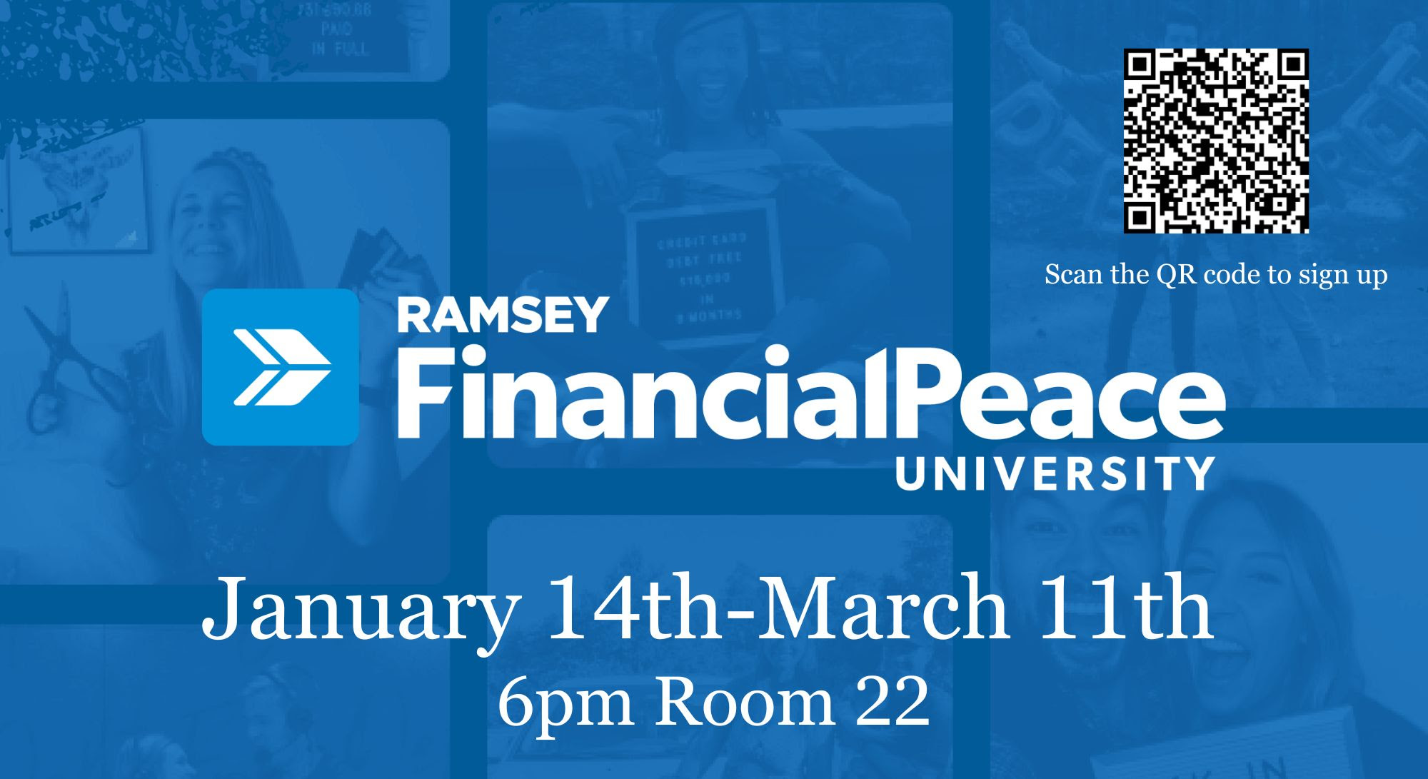 Financial Peace University will begin Wednesday, January 14th at 6:00 pm in Room 22 and will run through March 11th.