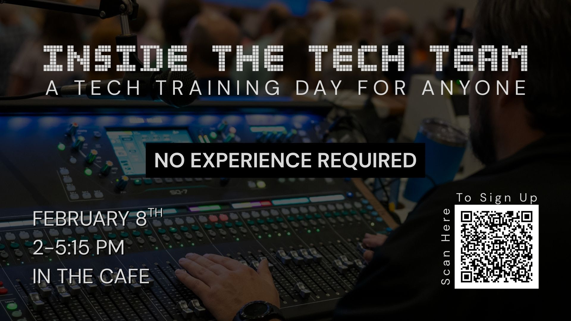 Ever been curious about serving on the tech team? Or already serve and want to sharpen your skills? This one’s for you! Join us Sunday, February 8 at 2:00 PM for our Tech Ministry Training Day. This training is open to current tech team members and anyone interested in learning more about tech ministry at Woodburn.