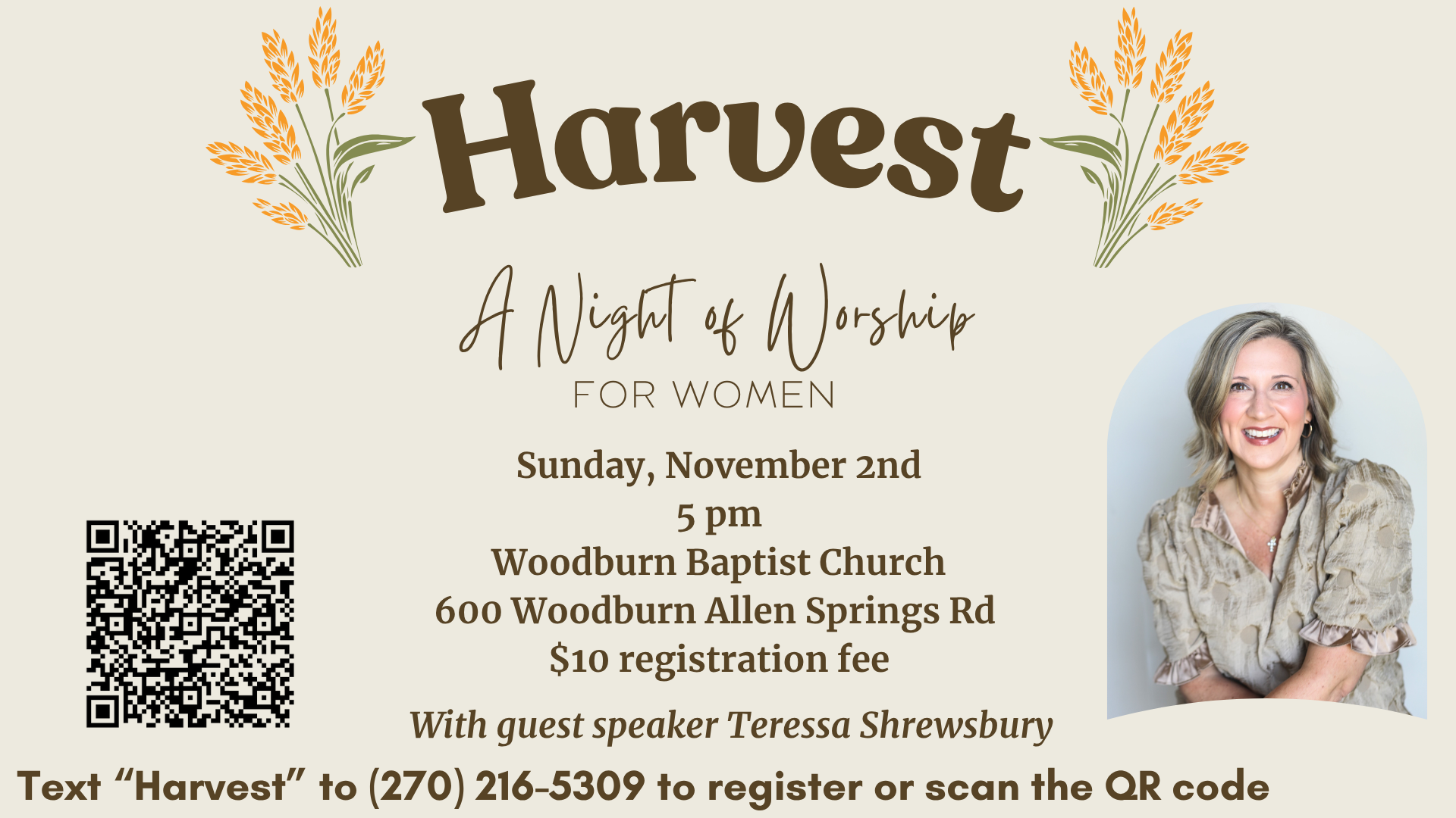 Ladies, this special night of worship is for you! We hope that you will sign up and come ready to worship on November 2nd. This will be a wonderful night full of great music, fellowship, and a timely word from Teressa Shrewsbury. The cost is only $10. Sign up below!