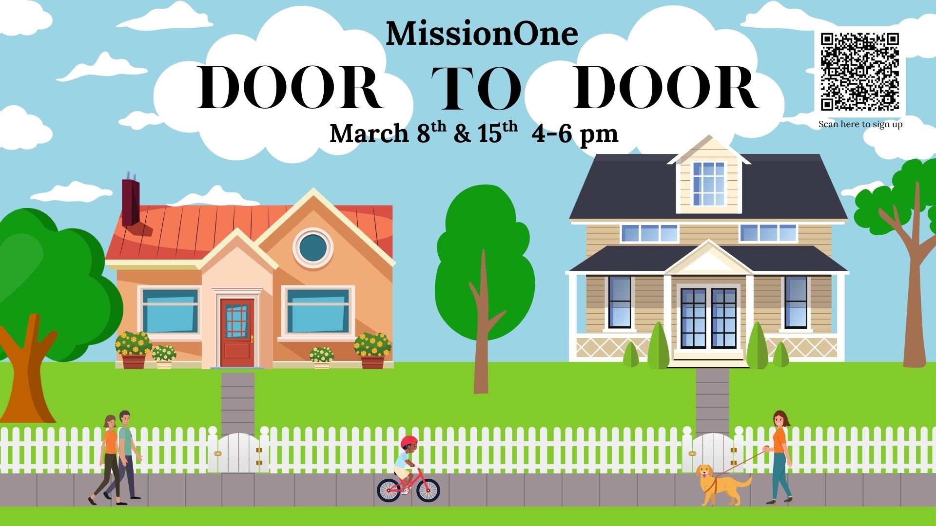 Join us on either Sunday March 8th or March 15th as we go through the community sharing the love of Jesus with our neighbors. Grab a partner and sign up to help us as we will be going door to door in some of the neighborhoods within a 10 mile radius of our church. We will hand out bags that have information about our church and about the gospel. Sign up using the link below.